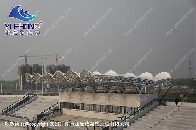 學(xué)校看臺膜結(jié)構(gòu)屬于輕便簡約風(fēng)建筑風(fēng)格,以優(yōu)雅的曲面、柔和的線條和半透明的膜布,更能提升了操場上建筑美感,讓操場煥然一新。并且能為坐在看臺提供一個舒適的環(huán)境,觀賞操場上的一切。看臺膜結(jié)構(gòu)具備有遮陽遮雨防紫外線優(yōu)勢。